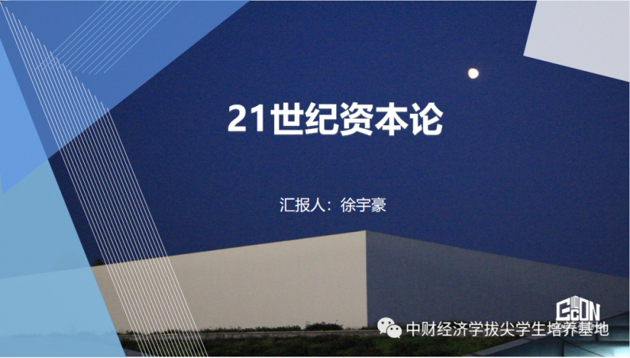 接着,徐宇豪同学分享了对托马斯·皮凯蒂的著作《21世纪资本论》的理解和收获。托马斯·皮凯蒂是法国著名经济学家,巴黎beat365在线体育官网登录入口教授,主要研究财富与收入不平等问题。他在42岁时出版《21世纪资本论》,并荣获了欧洲经济学会Yrjo-Jahnsson奖。该书主要研究的是资本主义历史上长期存在的财富和收入分配的不平等问题。二战以后,以“库兹涅茨曲线”为名的流行观点认为不平等的程度会随着经济增长自动出现先上升后下降的趋势。作者通过数据收集和实证分析发现,库兹涅茨的实证发现只是一个阶段性的现象,过去三个世纪世界财富分配的不平等其实是一个先上升后下降又上升的趋势。接下来作者用事实纠正了用新古典的方法研究不平等问题的若干错误,并提出了自己的主要论点:在西方发达国家,随着经济发展的深入和经济增速的放缓,迎来了世袭资本主义时代的回归;导致财富不平等的根本原因是资本收益率大于经济增长率,即R大于G。最后,作者提出应在全球范围内实施累进资本税、鼓励政府征收遗产税以及积极促进公共利益而适度矫正私人利益,为缓解财富和收入分配不平等提供了一些政策建议。书中的政策建议的可行性有待商榷,但要承认皮凯蒂在全球范围内不平等问题的理论阐述方面做出了卓越的学术贡献。